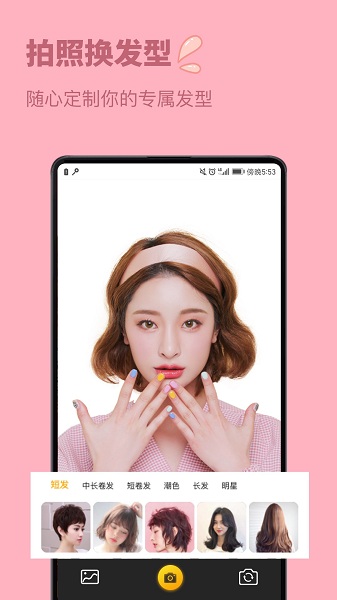 1、無論你是型男還是萌妹,無論你是想剪短發(fā)發(fā)型、留長發(fā)發(fā)型、燙發(fā)染發(fā)還是卷發(fā),都可以通過我們的發(fā)型相機輕松做到完美發(fā)型設(shè)計與臉型搭配。