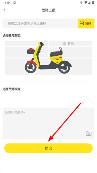 3、點(diǎn)擊提交,即可完成小黃鴨共享app的故障上報(bào)操作。