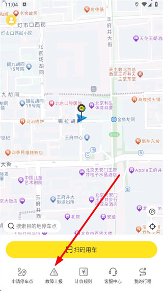 1、在小黃鴨共享app界面點(diǎn)擊故障上報(bào),進(jìn)入故障上報(bào)頁面。