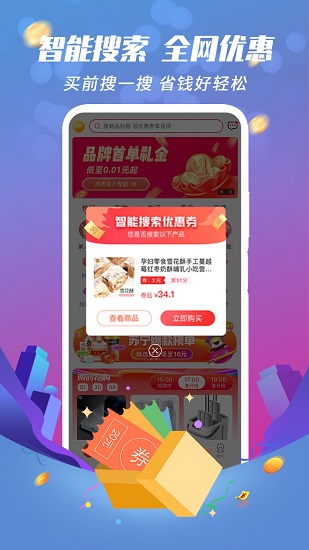 搜嗨皮是一款購物必備神器,平臺(tái)匯集了各種商品類型,用戶可以直接根據(jù)搜索來尋找自己心儀的商品,購買前一鍵領(lǐng)取優(yōu)惠券,買到的商品更劃算,各種優(yōu)質(zhì)福利提供給用戶,讓用戶能夠省錢更省心的購物,你還在猶豫什么,趕緊來下載吧!