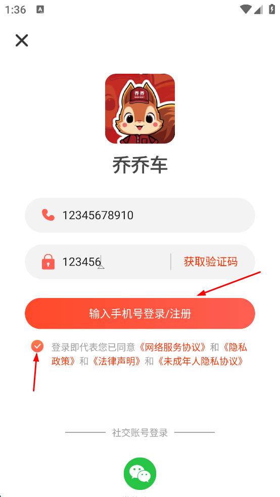 4、勾選同意協(xié)議隱私協(xié)議,然后點(diǎn)擊“輸入手機(jī)號(hào)登錄/注冊(cè)”按鈕。