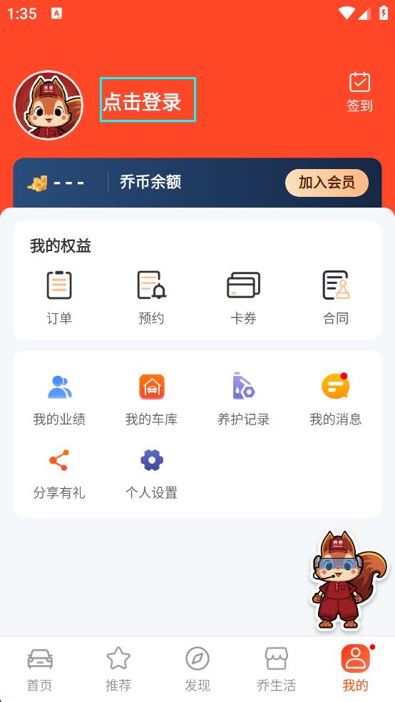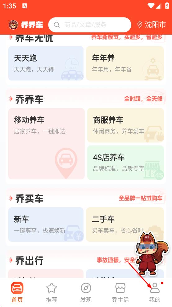 1、打開喬喬車APP,進(jìn)入首頁后,點(diǎn)擊頁面右下角的“我的”按鈕。