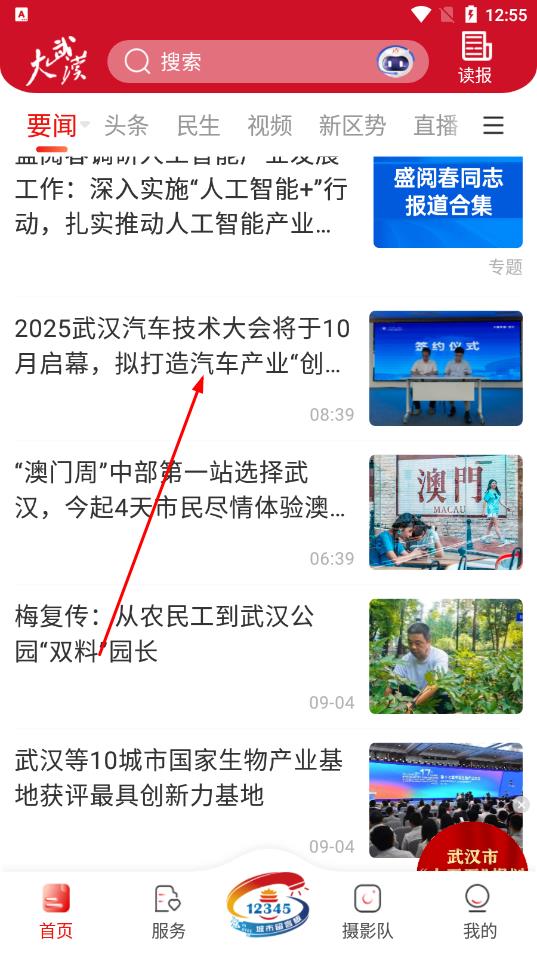 1、打開大武漢App,進(jìn)入首頁(yè),點(diǎn)擊進(jìn)入新聞詳情頁(yè)面。
