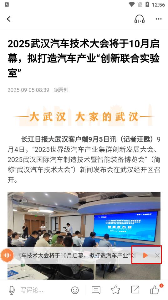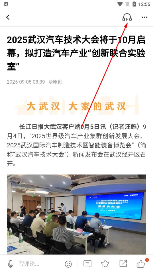 2、在新聞詳情頁(yè)面,點(diǎn)擊右上角的耳機(jī)圖標(biāo)。