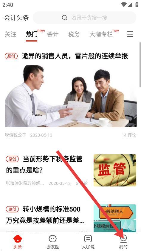 1、打開會計頭條,點擊底部導(dǎo)航欄中的我的。