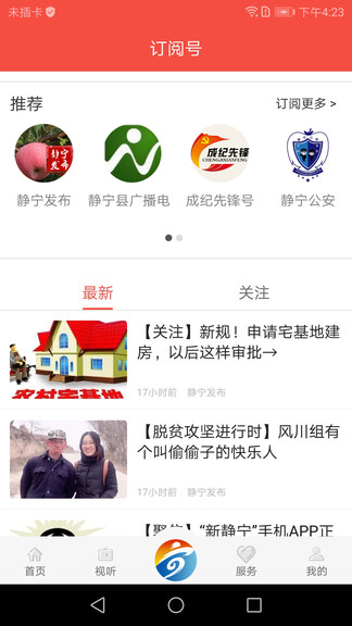 新靜寧是一款寧靜縣的本地新聞服務(wù)app,軟件上有超多的本地新聞和全國時事,每天實時更新,讓用戶能夠知曉各種新聞。還有各項當(dāng)?shù)氐拿裆?wù)功能,身份證進度查詢、殘疾人服務(wù)、信用查詢、掛號、違章查詢、教師認證、用地許可、動物防疫等等,用來幫助當(dāng)?shù)鼐用窨旖蒉k事,省事省心。