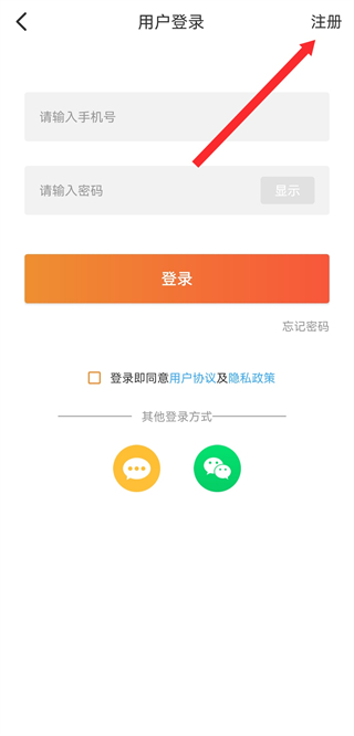 3、在用戶登錄的界面,點(diǎn)擊右上角注冊,進(jìn)入注冊的頁面。