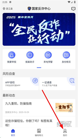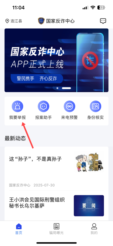 1、民眾遇到疑似詐騙行為,像收到詐騙短信、遭遇虛假APP詐騙等情況,協(xié)助公安機(jī)關(guān)打擊詐騙行為點(diǎn)擊首頁的我要舉報(bào)。