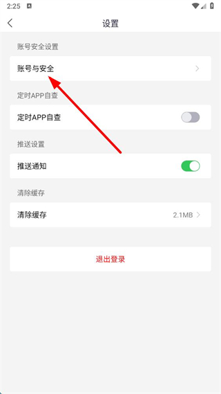3、在設(shè)置頁面,找到賬號與安全選項(xiàng)并點(diǎn)擊,進(jìn)入賬號與安全頁面。