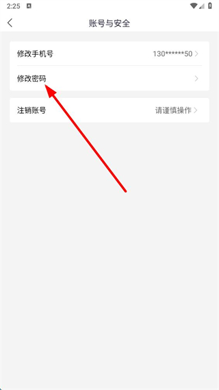 4、在賬號與安全頁面,找到修改密碼選項(xiàng)并點(diǎn)擊,按提示完成密碼修改操作。