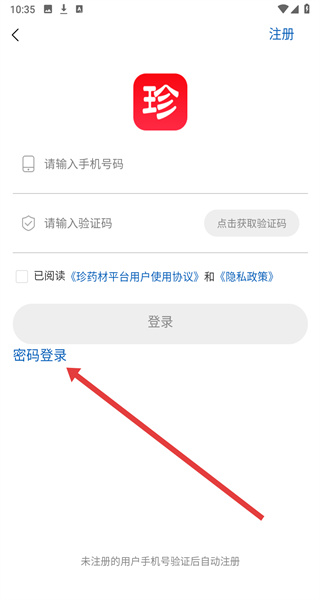 3、在進入到登錄頁面后,可以點擊下方密碼登錄按鈕,切換登錄方式。