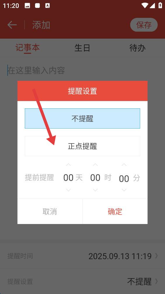 3、在彈出的提醒設(shè)置窗口中,選擇并點(diǎn)擊正點(diǎn)提醒。