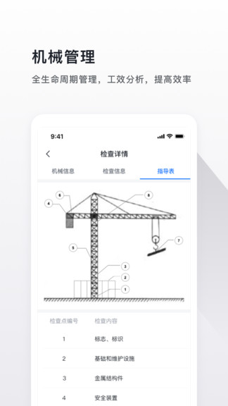 為用戶(hù)提供機(jī)械管理版塊,用戶(hù)可以看到機(jī)械設(shè)備詳細(xì)信息,了解指導(dǎo)表內(nèi)容