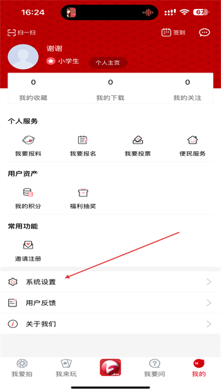 2、在個(gè)人主頁內(nèi),點(diǎn)擊系統(tǒng)設(shè)置的功能按鈕。