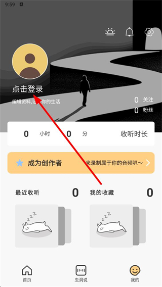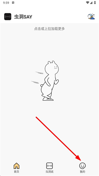 1、在蟲洞Say首頁,點(diǎn)擊右下角我的按鈕,進(jìn)入個人中心界面。