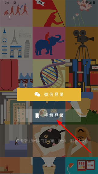 3、在登錄方式選擇界面,點(diǎn)擊手機(jī)登錄,進(jìn)入快捷登錄界面。