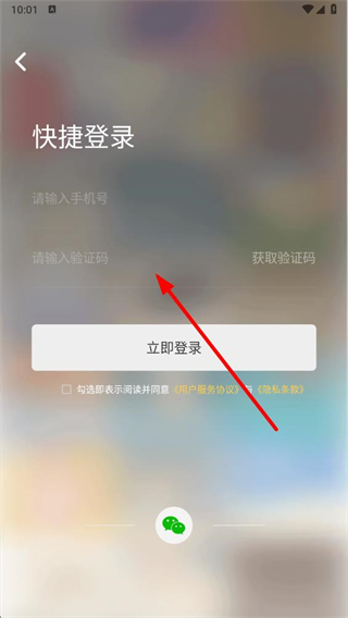 4、在界面輸入手機(jī)號,獲取驗(yàn)證碼,勾選同意相關(guān)協(xié)議后,點(diǎn)擊立即登錄按鈕,即可完成手機(jī)號登錄。