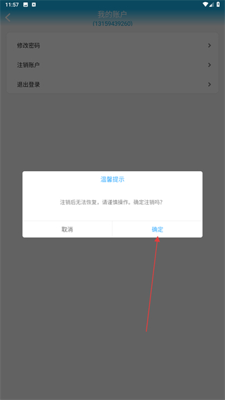4、當(dāng)界面彈出溫馨提示后,再次點(diǎn)擊確定按鈕即可完成注銷。