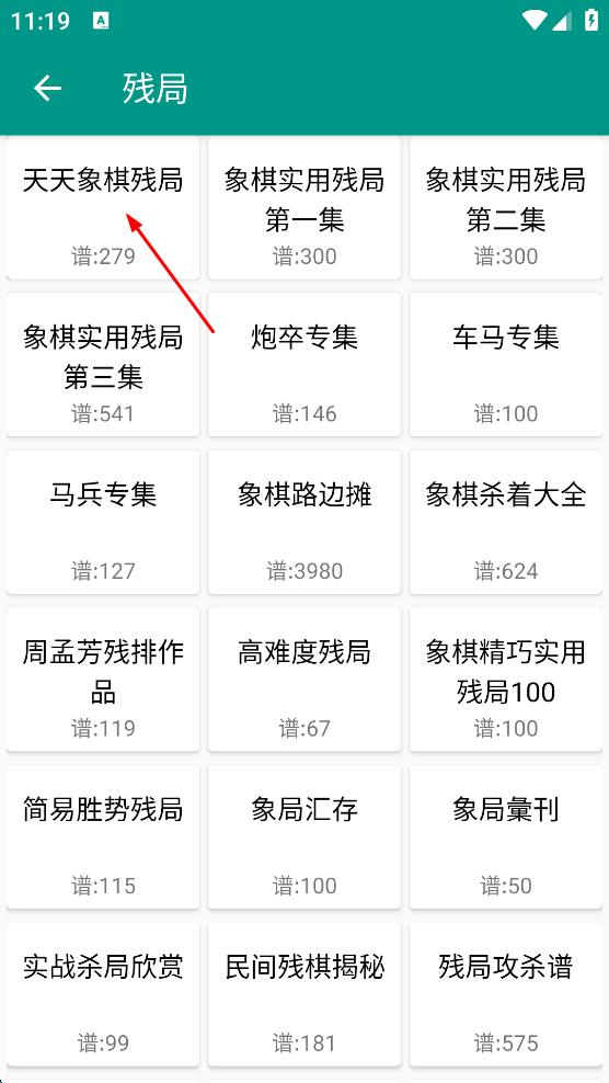 2、在殘局頁(yè)面,點(diǎn)擊“天天象棋殘局”,進(jìn)入天天象棋殘局關(guān)卡列表。