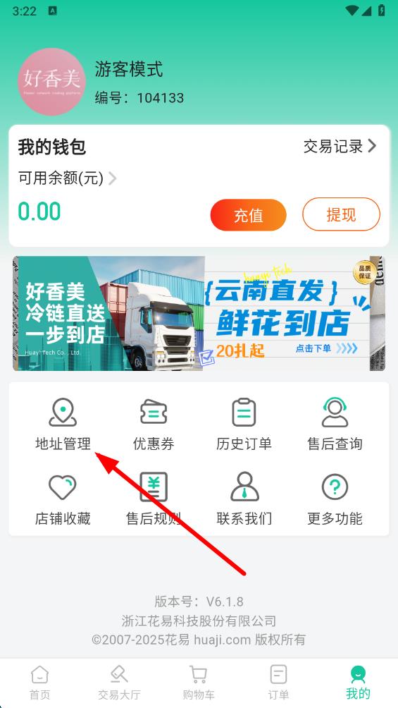 2、在個人中心頁面里,點(diǎn)擊地址管理選項,進(jìn)入地址管理界面。