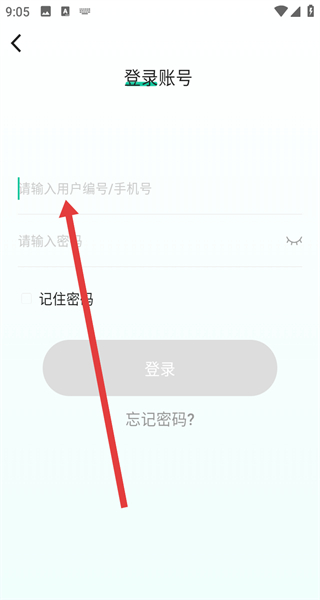 3、在登錄賬號界面,輸入用戶編號或手機(jī)號,再輸入密碼。