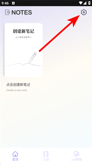 1、打開(kāi)無(wú)限草稿APP,點(diǎn)擊右上角的設(shè)置圖標(biāo),進(jìn)入設(shè)置頁(yè)面。