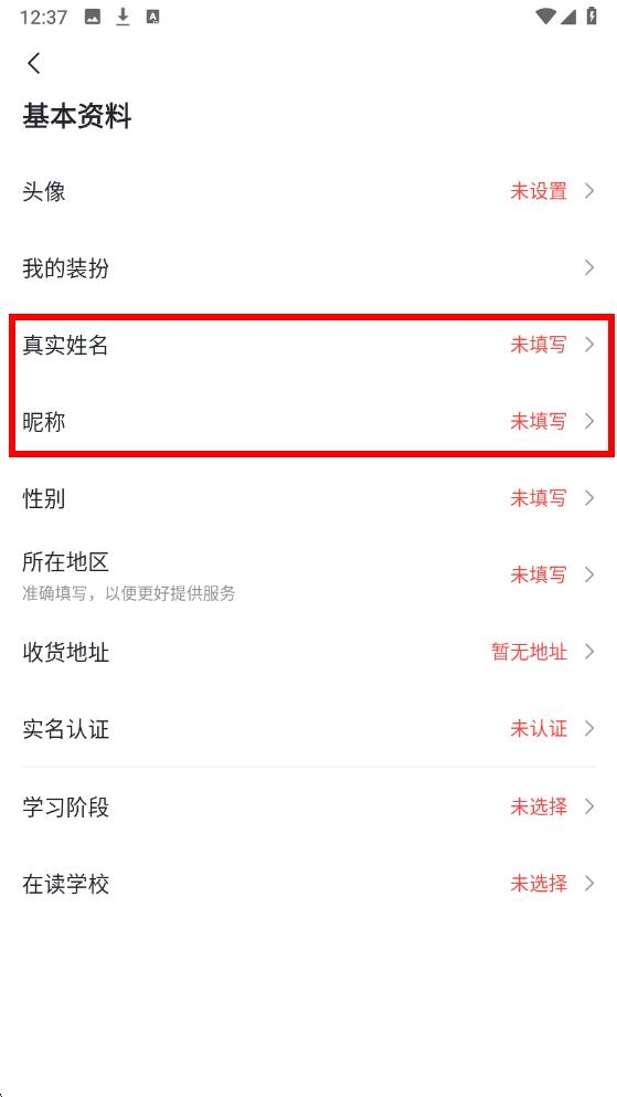 3、在基本資料頁面中找到真實(shí)姓名或昵稱選項(xiàng),點(diǎn)擊對應(yīng)的區(qū)域按照提示輸入想要修改的名字確認(rèn)后即可改名成功。