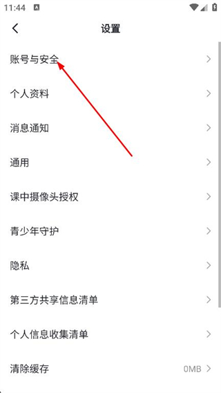 3、進(jìn)入設(shè)置頁面后,點(diǎn)擊上方賬號與安全選項(xiàng)。