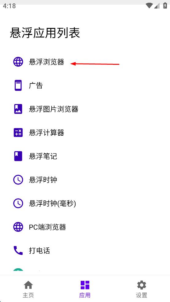 2、在懸浮應(yīng)用列表中點(diǎn)擊懸浮瀏覽器。
