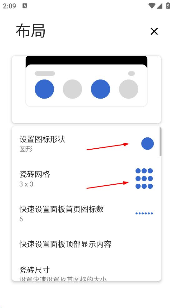 3、在布局設(shè)置里,依次設(shè)置圖標形狀為圓形、瓷磚網(wǎng)格為3×3 ,完成布局相關(guān)參數(shù)設(shè)定,優(yōu)化顯示樣式。