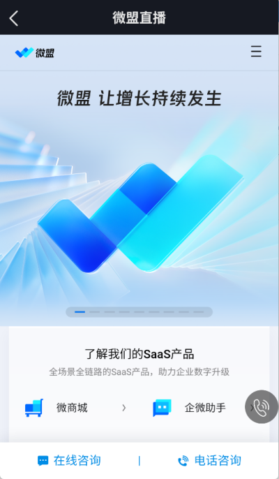 3、點擊后可以查看微盟直播的產(chǎn)品信息,可以在線咨詢了解更多的信息內(nèi)容。