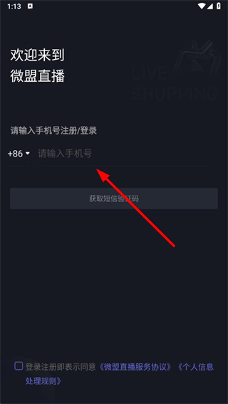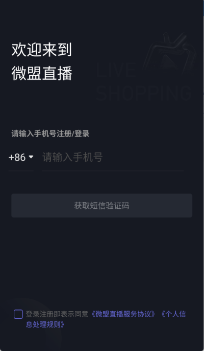 3、在微盟直播登錄界面,輸入新的手機號,按提示完成后續(xù)登錄操作即可切換賬號。