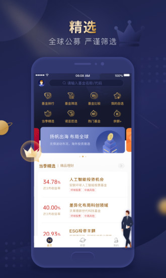 4、目前平臺擁有超50家全球知名基金管理人、近千只公募基金。