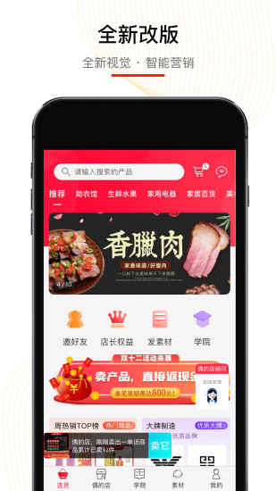 偶的店是一款既能在線購物又能網(wǎng)上開店的app,軟件上的商品大部分都是由個(gè)人創(chuàng)業(yè)者和個(gè)人商家商家銷售的,商品的質(zhì)量由平臺(tái)確認(rèn)過關(guān)才能上架銷售,可以放心購買。家居百貨,衣帽服飾,箱包鞋子,美味零食,生鮮水果等等應(yīng)有盡有,既能方便購物又能方便賺錢。