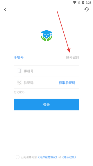 2、在登錄頁面選擇賬號密碼登錄方式,進入賬號密碼登錄界面。