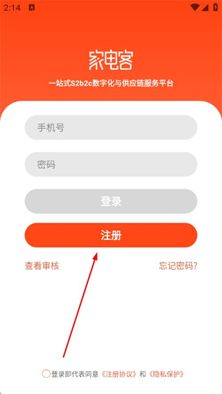 1、打開家電客APP,在登錄頁面點(diǎn)擊注冊(cè)。