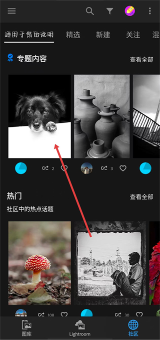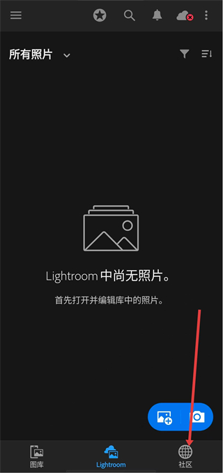 1、打開Lightroom APP,點(diǎn)擊右下角社區(qū)。