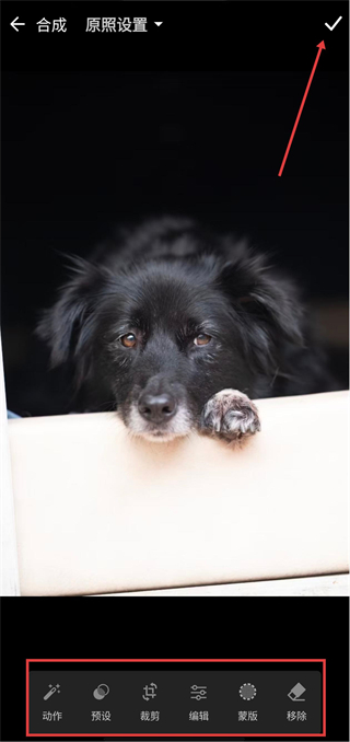 4、使用工具進(jìn)行圖片編輯,完成后點(diǎn)擊對勾。