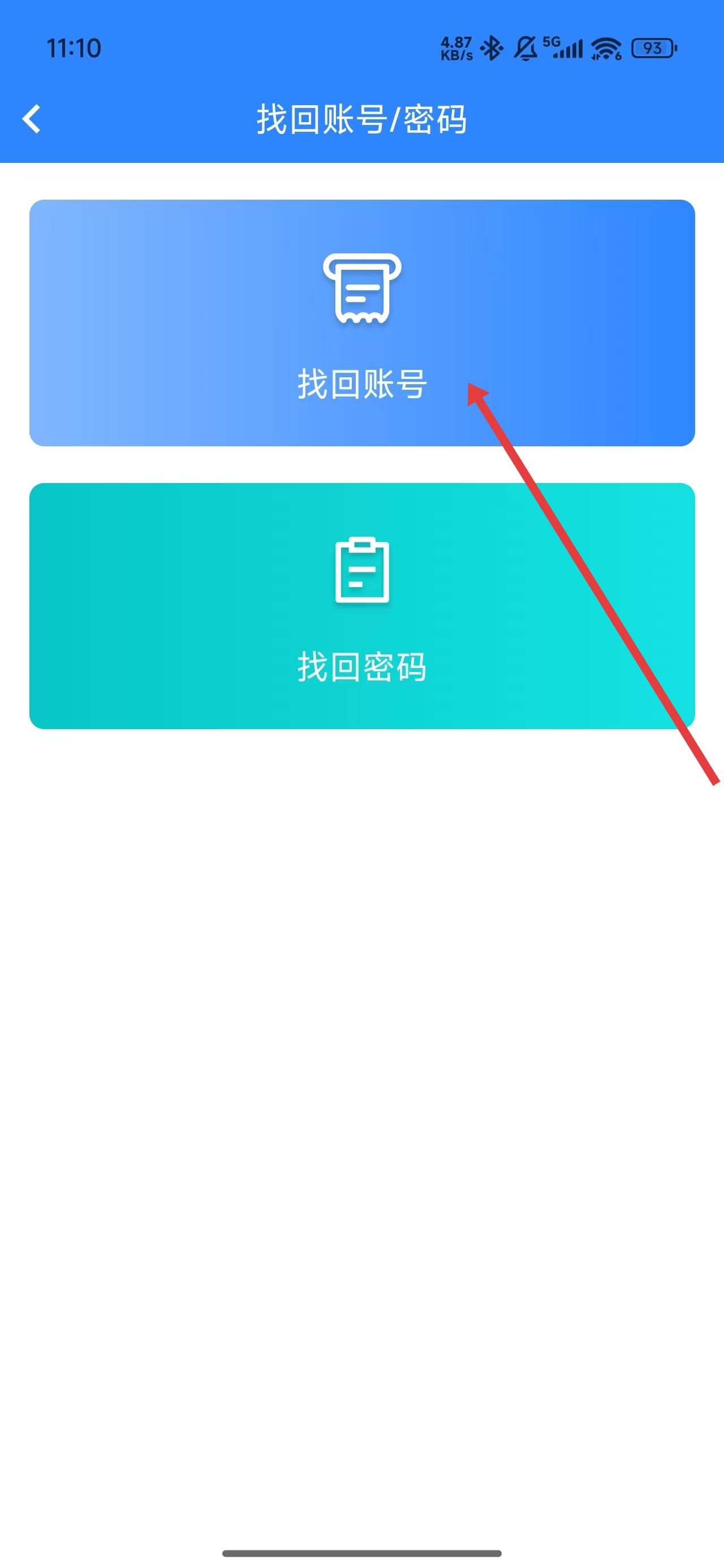 2、在進(jìn)入到登錄頁面中,若忘記了賬號,可以點擊下方找回賬號按鈕解決。