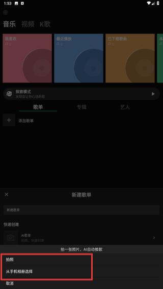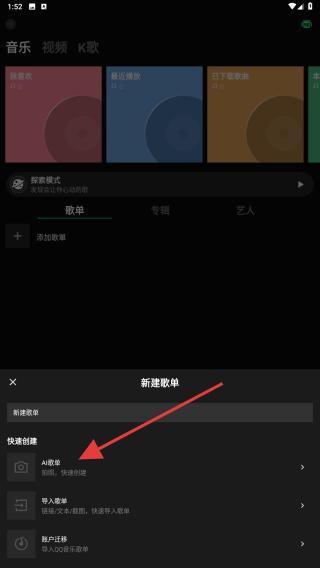 3、在彈出的界面內(nèi),用戶(hù)可選擇并點(diǎn)擊AI歌單。
