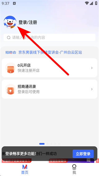 1、打開京麥APP,我們需要點(diǎn)擊左上角登錄/注冊(cè)的圖標(biāo)。
