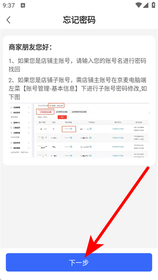 4、在忘記密碼的頁面,我們需要點(diǎn)擊下一步。