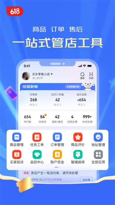 4.提供店鋪關(guān)鍵信息提醒,以及商品、交易、數(shù)據(jù)、論壇等常用操作的快捷入口。