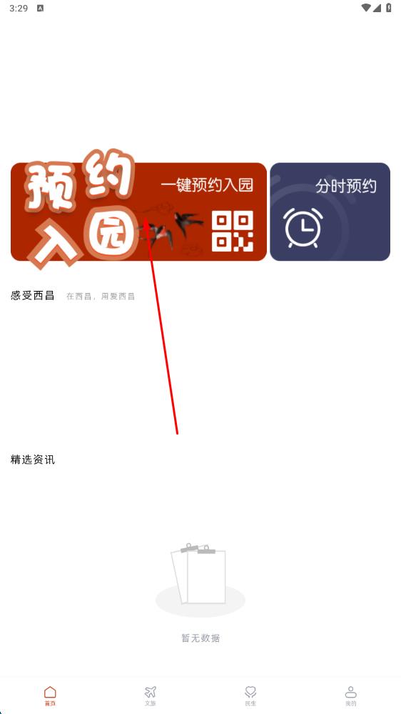 2、完成登錄/注冊操作后,返回“首頁”,找到“預約入園”區(qū)域,選擇“一鍵預約入園”選項。