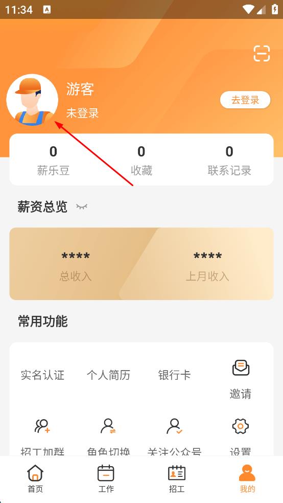 2、在個(gè)人中心頁(yè)面,能看到游客身份標(biāo)識(shí)及相關(guān)信息,點(diǎn)擊頭像區(qū)域,進(jìn)入登錄選擇頁(yè)面。
