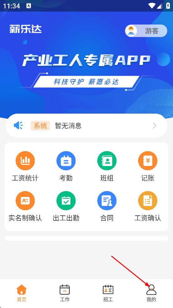 1、打開(kāi)薪樂(lè)達(dá)APP,進(jìn)入首頁(yè)后,點(diǎn)擊頁(yè)面右下角“我的”選項(xiàng),進(jìn)入個(gè)人中心頁(yè)面。