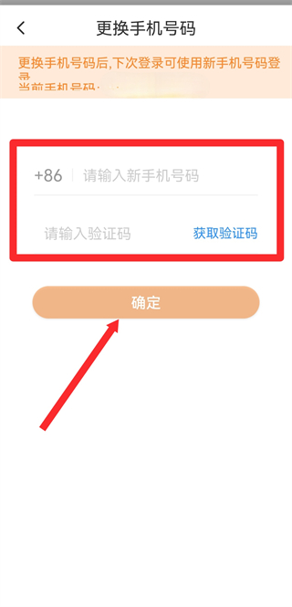 4、在頁(yè)面輸入新手機(jī)號(hào)碼、驗(yàn)證碼后,點(diǎn)擊確定完成手機(jī)號(hào)更換操作。