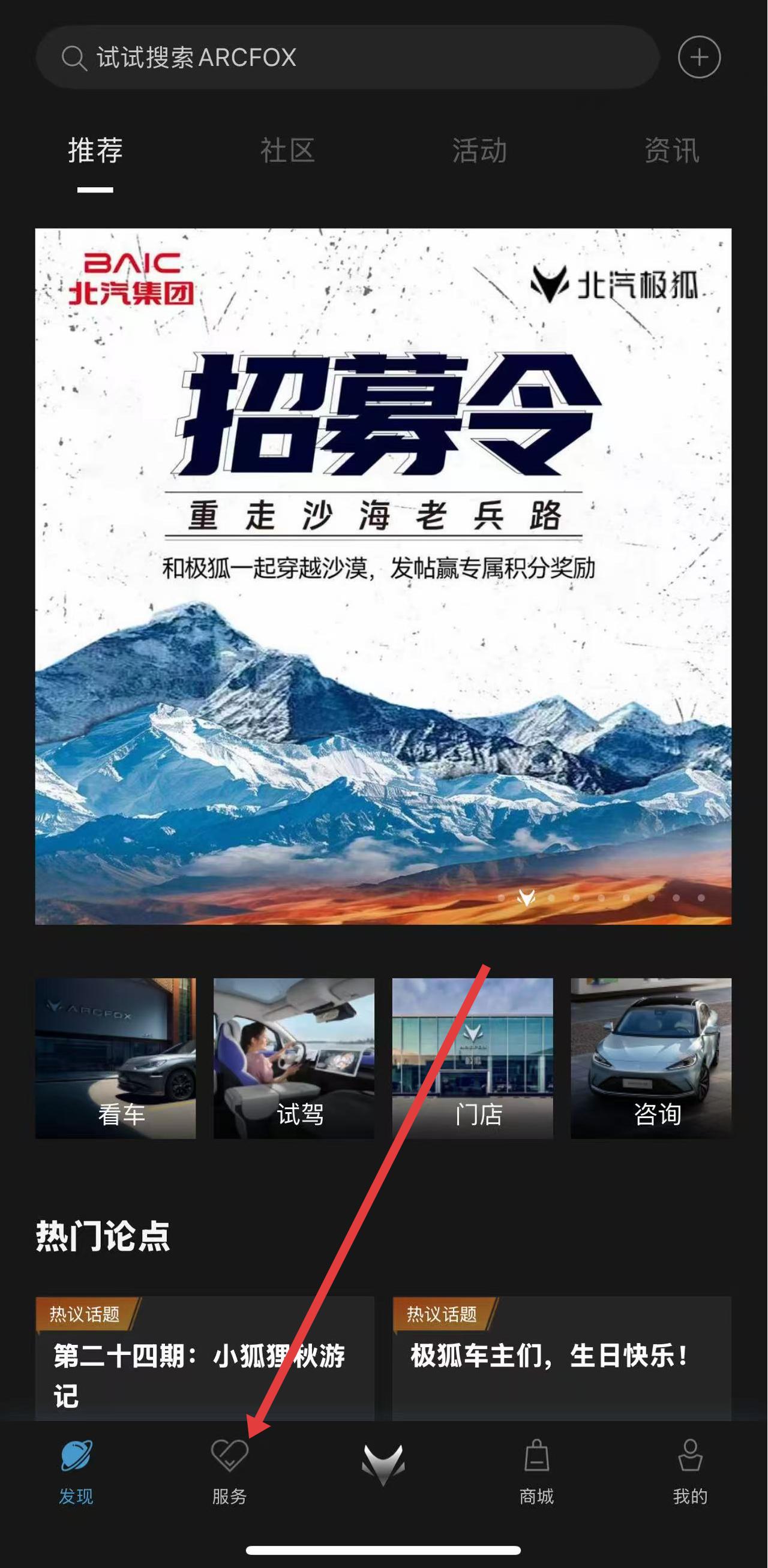 1、打開極狐APP,進(jìn)入主界面后,點(diǎn)擊底部導(dǎo)航欄中的服務(wù)選項(xiàng)。