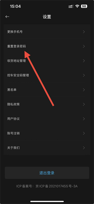 3、在設(shè)置頁面,點(diǎn)擊重置登錄密碼,進(jìn)入重置登錄密碼頁面。