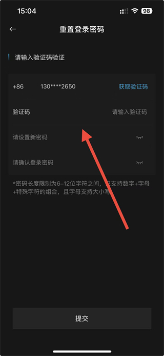 4、在頁面獲取驗(yàn)證碼,設(shè)置新密碼并確認(rèn),點(diǎn)擊提交,即可完成密碼重置。